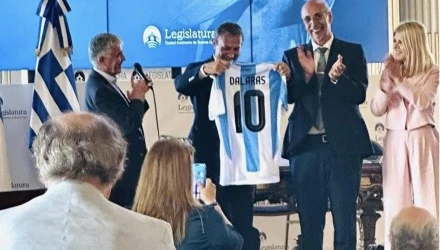 O 76χρονος τραγουδιστής τιμήθηκε με τον τίτλο του Διακεκριμένου Πολίτη του Μπουένος Άιρες σε εκδήλωση που έγινε στο δημαρχείο της πρωτεύουσας. Μάλιστα, έλαβε και μια φανέλα της εθνικής Αργεντινής με το όνομά του και τον αριθμό «10» που έχουν φορέσει οι Ντιέγκο Αρμάντο Μαραντόνα και Λιονέλ Μέσι. «Σας ευχαριστώ πάρα πολύ για την ξεχωριστή τιμή!», ανέφερε σε ανάρτησή του στο Facebook ο Γιώργος Νταλάρας.