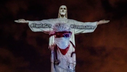 Το Άγαλμα του Χριστού Λυτρωτή στο Ρίο ντε Τζανέιρο της Βραζιλίας φωτίστηκε με πορτραίτα εργαζομένων στον τομέα της υγειονομικής περίθαλψης ως απόδοση φόρου τιμής σε όσους διακινδυνεύουν καθημερινά τη ζωή τους για να βοηθήσουν τους συνανθρώπους τους κατά την περίοδο της πανδημίας του κορωνοϊού.
