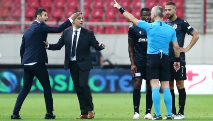 Ο πάγκος του ΠΑΟΚ διαμαρτυρήθηκε έντονα γι΄αυτό το τέρμα και ο γενικός αρχηγός του Δικεφάλου αντίκρισε την κόκκινη κάρτα κάνοντας τα έντονα παράπονά του στον Ολλανδό διαιτητή.