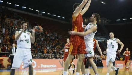 Στην δεύτερη περίοδο όμως, η ομάδα του Ντούσκο Ιβάνοβιτς φάνηκε να χάνει την συγκέντρωσή της τόσο στην άμυνα όσο και στην επίθεση, με αποτέλεσμα η Γαλατά, την οποία κοουτσάριζε ο βοηθός του Αταμάν, Γιαγκιζέρ Ουλούγκ, άρχισε να ανεβάζει «στροφές», εκμεταλλεύτηκε τα κενά διαστήματα των «πρασίνων» και στο 12’ πέρασε μπροστά στο σκορ με 27-25! Στην συνέχεια οι ομάδες συμβάδιζαν και πάλι στο σκορ, με τους γηπεδούχους να έχουν βρει λύσεις στην επίθεση από τον Πάτρικ Γιανγκ αλλά οι Μαυροκεφαλίδης και Μπλουμς έδωσαν μικρή ώθηση στην επιθετική γραμμή της ελληνικής ομάδας, που στο τέλος του πρώτου ημιχρόνου προηγήθηκε με 38-40.