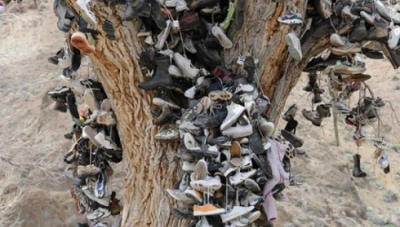 Το μοναδικό δέντρο με τα παπούτσια βρισκόταν στη Νεβάδα των ΗΠΑ, στον αυτοκινητόδρομο 50, τον αποκαλούμενο και “πιο μοναχικό δρόμο της Αμερικής”. Έγινε ένα από τα δημοφιλέστερα και πιο περίεργα αξιοθέατα της πολιτείας εξαιτίας των εκατοντάδων παλιών παπουτσιών που ήταν κρεμασμένα στα κλαδιά του.