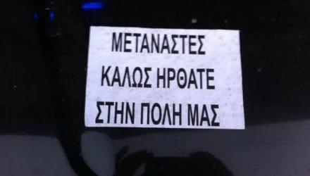 Αυτά ανέγραφαν στα ελληνικά και τα τούρκικα: «Μετανάστες καλώς ήρθατε στην πόλη μας».