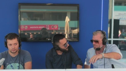 Ο σύμβουλος του Ηρακλή Σάκης Χατζόγλου, στο στούντιο του Metropolis 95,5 στην 83η ΔΕΘ με τον δημοσιογράφο Παναγιώτη Σωτηρόπουλο και τον τεχνικό Χρήστο Χριστοδούλου
