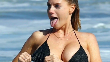 Η 22χρονη καλλονή, αφού ήπιε μερικά ποτά παρέα με τον ηθοποιό Stephen Dorff, πέταξε το σορτσάκι της και πλατσούρισε στα νερά, αντιμετωπίζοντας ωστόσο μερικά λειτουργικά προβληματάκια με το ατίθασο μαγιό της το οποίο δεν έλεγε να στρώσει πάνω της.