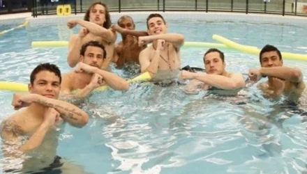 Όλοι μαζί χαλάρωναν στην πισίνα του προπονητικού κέντρου και εκεί ο Νταβίντ Λουίζ, ο Τιάγκο Σίλβα, ο Όσκαρ και ο Φρεντ έβγαλαν φωτογραφίες, όπου κάνουν την χειρονομία του 22χρονου παίκτη της Μπαρτσελόνα, «Toiss».