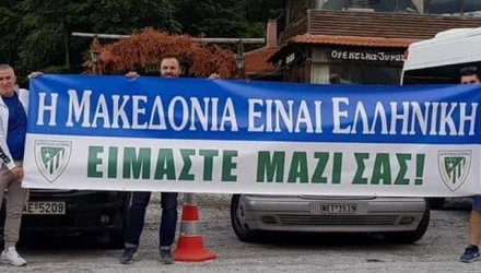 Μέλη της διοίκησης του Ερασιτέχνη μετέβησαν στον χώρο του συλλαλητηρίου μαζί με πανό υπέρ της ελληνικότητας της Μακεδονίας.