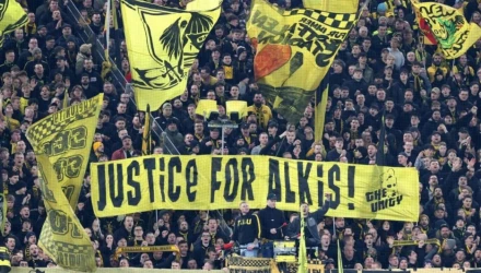 Οι φίλοι της Ντόρτμουντ έδειξαν για ακόμη μία φορά την αλληλεγγύη τους και τη μνήμη τους στον Άλκη, υψώνοντας πανό κατά τη διάρκεια της αναμέτρησης της ομάδας τους με τη Χαϊντενχάιμ. Το μήνυμα που κυριαρχούσε ήταν σαφές και φορτισμένο συναισθηματικά: «Δικαιοσύνη για τον Άλκη».