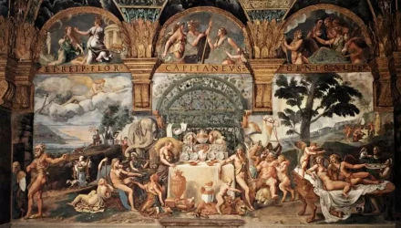 Τρίβοντας τα έκπληκτα μάτια του ο Μπέρχαρντ αναγνώρισε ανάμεσα στις καλλίπυγους νεαρές την Φιαμέτα, την ερωμένη του Καίσαρα Βοργία να παίζει ημίγυμνη λαούτο στο τραπέζι του συμποσίου. Οι φήμες διέδιδαν ότι ή Φιαμέτα ήταν τόσο πλούσια, που είχε χρηματοδοτήσει μια ολόκληρη τοιχογραφία στην εκκλησία του Αγίου Αυγουστίνου.