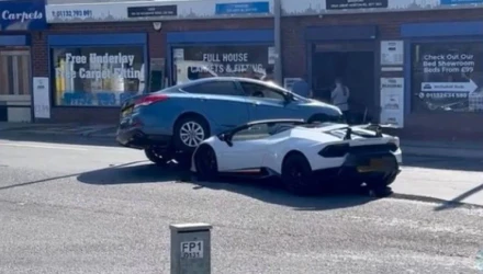 Ένα περίεργο τροχαίο σημειώθηκε στο Λιντς της Αγγλίας, με τις δεξιές ρόδες ενός Hyundai να «σκαρφαλώνουν» πάνω στο καπό μιας Lamborghini Huracan Perfomance αξίας 250.000 λιρών.