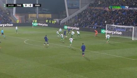 Συγκεκριμένα, το τριφύλλι άνοιξε το σκορ στο 15ο λεπτό όταν ο Τετέ τροφοδότησε ωραία τον Βαγιαννίδη, αυτός έκανε το γύρισμα από τα δεξιά στην περιοχή προς τον Τζούριτσιτς. Ο Σέρβος έκανε το σουτ, ο Ρόμπερτς τον σταμάτησε στο πρώτο σουτ, όχι όμως και στη δεύτερη.