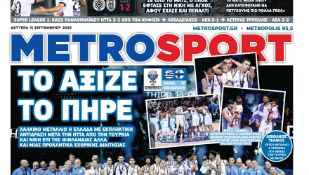 Το σημερινό (15/9) πρωτοσέλιδο της Metrosport