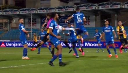 Σε εκτέλεση φάουλ ο Χουτεσιώτης έπεσε πάνω στον Χνιντ και μετά από εξέταση στο VAR ο διαιτητής Διαμαντόπουλος καταλόγισε την εσχάτη των ποινών.