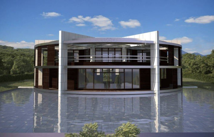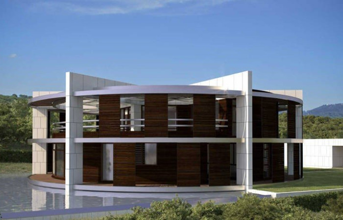 Το τεράστιο κυκλικό σπίτι είναι χτισμένο με τις αρχές της βιώσιμης αρχιτεκτονικής και της οικολογίας κατά νου. Ακόμα και η μισή στέγη είναι καλυμμένη με πράσινο, την ίδια ώρα που η άλλη μισή έχει γυαλί, για να τρυπώνει ανεμπόδιστα το ηλιακό φως στο εσωτερικό.