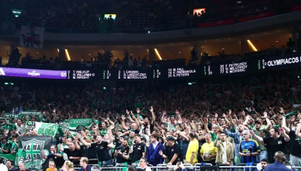 Οι φίλαθλοι του πετούσαν στον έβδομο ουρανό αποθεώνοντας τον Έργκιν Αταμάν και τους παίκτες του. Η Uber ARENA ντύθηκε στα «πράσινα» και το σύνθημα που ηχούσε την ατμόσφαιρα αποθέωνε τους παίκτες και την προσπάθεια που έχει γίνει φέτος αλλά και φυσικά τον ηγέτη Κώστα Σλούκα που συνέβαλλε τα μέγιστα για να κατακτήσει η ομάδα το τρόπαιο.