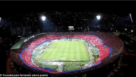 Οι φίλοι της κολομβιανής ομάδας αποκάλυψαν το λάβαρο που είχαν ετοιμάσει, στον αγώνα με την Ντεπορτίβο Κάλι και το οποίο κάλυψε ολόκληρο το γήπεδο των 45.000 θέσεων.