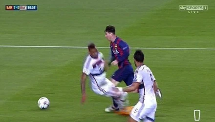 Ο αμυντικός της Μπάγερν ζαλίστηκε από την προσποίηση του Μέσι και σωριάστηκε στο χορτάρι μην μπορώντας να ακολουθήσει τον αργεντινό σούπερ σταρ, ο οποίος ελάχιστα δευτερόλεπτα αργότερα νίκησε για δεύτερη φορά τον Νόιερ.
