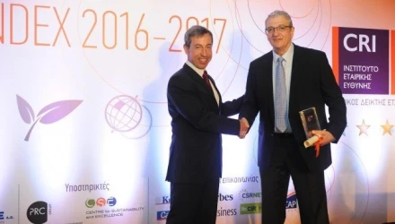 Διευρύνοντας τη λίστα των διακρίσεων και πιστοποιήσεων για τις πρακτικές της σε σχέση με την κοινωνία και το περιβάλλον, η Ελληνικός Χρυσός τιμήθηκε δια του Αντιπροέδρου και Διευθύνοντος Συμβούλου της, κ. Δημήτρη Δημητριάδη με το CRI Gold award, για τις επιδόσεις της, τις πολιτικές της και τις επιλογές της σε επίπεδο Εταιρικής Κοινωνικής Ευθύνης το 2016: