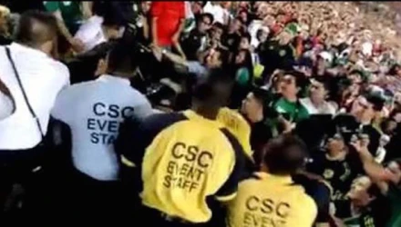 Στις εξέδρες του Μεξικού, επικράτησε χάος, όταν δύο φίλαθλοι λογομάχησαν, με αποτέλεσμα να τα κάνουν λαμπόγιαλο. Στον καβγά μάλιστα ενεπλάκησαν και κυρίες οι οποίες κυριολεκτικά μαλλιοτραβήχτηκαν.