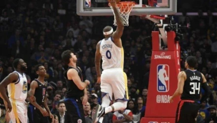 H καλύτερη φάση της βραδιάς ανήκει στον ΝτεΜάρκους Κάζινς που έκανε ένα τρομερό κάρφωμα στην επιστροφή του στα παρκέ που συνοδεύτηκε από τη νίκη των Ουόριορς επί των Κλίπερς στο Λος Αντζελες.