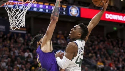 Η καλύτερη φάση της βραδιάς έγινε στο ματς των Τζαζ με τους Λέικερς στη Γιούτα όπου ο Ντόνοβαν Μίτσελ εφόρμησε και πέταξε προς το καλάθι των «λιμνανθρώπων» καρφώνοντας εντυπωσιακά μπροστά στον ΤζαΒέιλ ΜακΓκί.