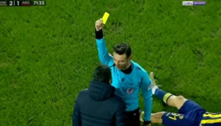 Ο διαιτητής δεν του έδωσε άδεια για να παρέμβει και αφού του ζήτησε στην αρχή να περάσει εκτός γηπέδου, τελικά αποφάσισε να του δείξει την κίτρινη κάρτα!