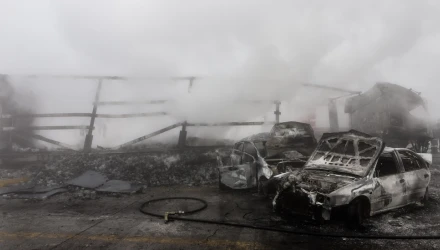 Από την σφοδρή πρόσκρουση ξέσπασε αμέσως φωτιά στο μεσαίο Ι.Χ. αυτοκίνητο, από το οποίο οι πυροσβέστες απεγκλώβισαν δύο άτομα απανθρακωμένα, ζευγάρι Ελλήνων από την Ελβετία 72 και 69 ετών αντίστοιχα.