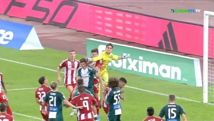 - Ο Τζολάκης δεν βρίσκει καθόλου την μπάλα και αυτή από το κεφάλι του Ρέτσου καταλήγει στα δύο του χέρια.