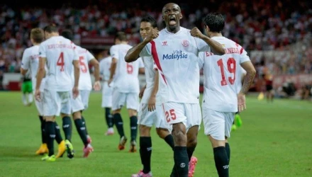 Η Σεβίλλη μπήκε πολύ δυνατά στο ματς και άνοιξε το σκορ μόλις στο 8ο λεπτό με τον Μπάκα μετά από τραγικό λάθος του Πάντιτς. Στ 12ο λεπτό ο Κάρλος είπε όχι σε σουτ του Μπάκα, ενώ στο 35' το σουτ του Βιδάλ πέρασε λίγο άουτ.