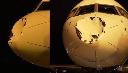 Το αεροπλάνο προσγειώθηκε χωρίς προβλήματα στο Σικάγο, ωστόσο η ζημιά στην μπροστινή του πλευρά είναι μεγάλη και προκαλεί πολλές απορίες σχετικά με τις συνθήκες της σύγκρουσης.