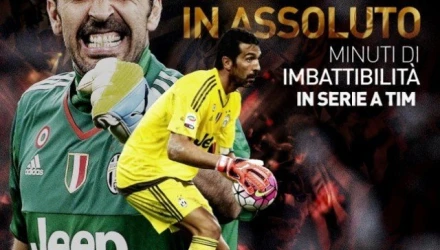 Κρατώντας απαραβίαστη την εστία του στα πρώτα τέσσερα λεπτά του αγώνα της Γιουβέντους με την Τορίνο, ο Μπουφόν συμπλήρωσε 930 λεπτά χωρίς να δεχθεί γκολ κι έγινε ο απόλυτος ρέκορντμαν στη Serie A, αφήνοντας πίσω του τον Σεμπαστιάνο Ρόσι!