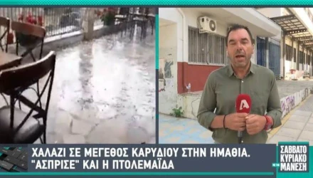 Έντονα καιρικά φαινόμενα έπληξαν το μεσημέρι του Σαββάτου την Ημαθία, με το χαλάζι που «σφυροκόπησε» την περιοχή να είναι σε μέγεθος καρυδιού!