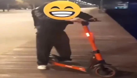 Τα χαρακτηριστικά του προσώπου του έχουν καλυφθεί. Όπως τονίζει το ρεπορτάζ της ΕΡΤ, το βίντεο φέρεται να ανέβηκε από φίλο του νεαρού που πετά το ηλεκτρικό πατίνι στη θάλασσα.