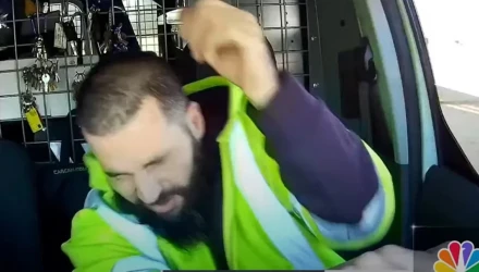 Ο 57χρονος αστυνομικός, βγήκε στη συνέχεια από το όχημα φορώντας σορτσάκι γυμναστικής και φούτερ με φερμουάρ, επιδεικνύοντας το σήμα του καθώς πλησίαζε το όχημα του Brocuglio.