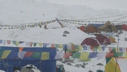 Ο απόλυτος πανικός. Ερασιτεχνικό βίντεο καταγράφει χιονοστοιβάδα που πλήττει τη στιγμή του σεισμού, την κεντρική κατασκήνωση ορειβατών στο Έβερεστ, περιστατικό που συνέβη σε υψόμετρο 5.300 μέτρων.