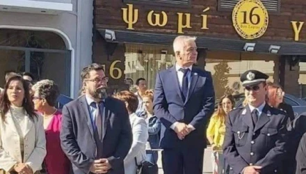 Ο δήμαρχος, όμως, βρίσκεται ένα σκαλί παραπάνω από τους άλλους. Αυτός άλλωστε χοροστατεί της εκδήλωσης, γι' αυτό και φρόντισε να στήσει ένα ειδικό βάθρο, μόνο για τον εαυτό του.