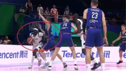 Serbian forward Borisa Simanic was transported to the hospital and ultimately lost one of his kidneys as a result of this incident against South Sudan 🤕