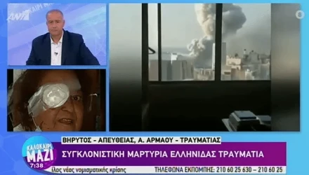 Σοκάρει η μαρτυρία μιας Ελληνίδας που βρισκόταν στο Λίβανο την ώρα της έκρηξης. Η κ. Άννα Αρμάου, η οποία τραυματίστηκε στο μάτι, περιγράφει τις δραματικές στιγμές που ακολούθησαν την έκρηξη, την αντίδραση τη δική της και του υπόλοιπου κόσμου.