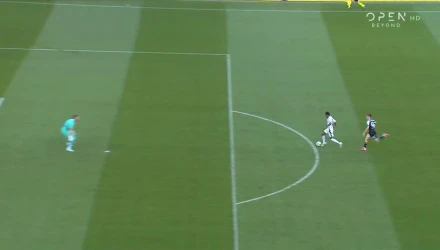 Μετά από εκτέλεση κόρνερ για τον ΠΑΟΚ στο 38ο λεπτό η αυστριακή ομάδα βγήκε στην αντεπίθεση με εξαιρετικό transition, με τον Μπαλό να είναι σε θέση τετ α τετ, όμως ο Παβλένκα του είπε «όχι» και διατήρησε το 0-0.