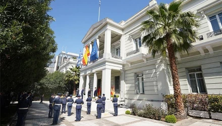 Κατά τη συμβολική τελετή που πραγματοποιήθηκε, ο πρόεδρος της Βουλής Κωνσταντίνος Τασούλας συνόδευσε τον πρεσβευτή της Ισπανίας στην Αθήνα Ενρίκε Βιγκέρα, στο Μνημείο του Αγνώστου Στρατιώτη, από όπου και απέδωσαν τιμή στα εθνικά σύμβολα των δύο χωρών, παρουσία του υπουργού Εξωτερικών Νίκου Δένδια και του αναπληρωτή υπουργού Εξωτερικών Μιλτιάδη Βαρβιτσιώτη.
