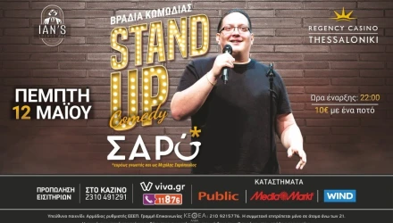 ΒΡΑΔΙΑ ΚΩΜΩΔΙΑΣ στο Ian’s Lounge Bar: Το Stand Up Comedy στα καλύτερά του με τον μοναδικό Σαρό!