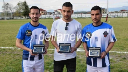 Οι δύο ποδοσφαιριστές, οι οποίοι κατάγονται από την περιοχή βραβεύθηκαν στο πλαίσιο φιλανθρωπικής αναμέτρησης μεταξύ του τοπικού ΠΑΣ Σκύδρα και ομάδας επιλέκτων ποδοσφαιριστών της περιοχής.