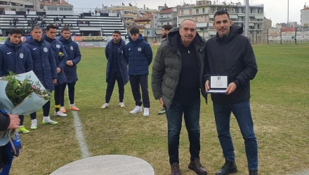 Στη συνέχεια, ο team manager του Ηρακλή Βαγγέλης Αγγελής πρόσφερε μια φανέλα με το νούμερο 11 στον Ακη Στολτίδη με το όνομα του μαζί με μία πανέμορφη ανθοδέσμη.
