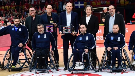 Οι ισχυροί άνδρες της ΚΑΕ Ολυμπιακός βραβεύτηκαν για την προσφορά τους, ύψους 100.000, καθώς με τη δική τους οικονομική βοήθεια αγοράστηκαν 16 σύγχρονα αμαξίδια για την Εθνική ομάδα.