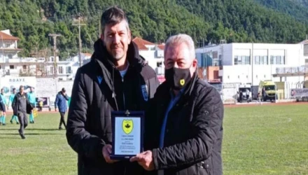 Πιο συγκεκριμένα, λίγο πριν από τη σέντρα οι άνθρωποι της γηπεδούχου ομάδας τίμησαν τον προπονητή της δεύτερης ομάδας του Δικεφάλου, αποδίδοντας του μια τιμητική πλακέτα.