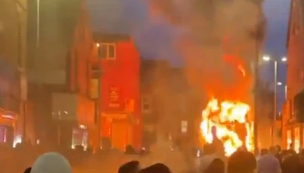 Σκηνές χάους προκλήθηκαν το απόγευα της Πέμπτης (18/7) στο Λιντς της κεντρικης Αγγλίας, με εκατοντάδες διαδηλωτές να συγκεντρώνονται στο κέντρο της πόλης, να βάζουν φωτιά σε ένα λεωφορείο και να προκαλούν ζημιές σε οχήματα, μεταξυ τους κι ένα περιπολικό.