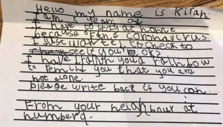 Ένας 93χρονος στη Βρετανία έλαβε ένα αξιολάτρευτο γράμμα από την πεντάχρονη γειτόνισσά του, μια κίνηση που μόνο αισιοδοξία εκπέμπει μέσα στις μέρες φόβου και μοναξιάς που βιώνει ο πλανήτης.