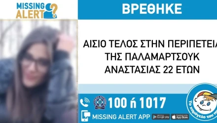 «Η περιπέτεια της Παλαμαρτσούκ Αναστασίας 22 ετών, έληξε σήμερα δίνοντας τέλος στην αγωνία των δικών της ανθρώπων που την αναζητούσαν.