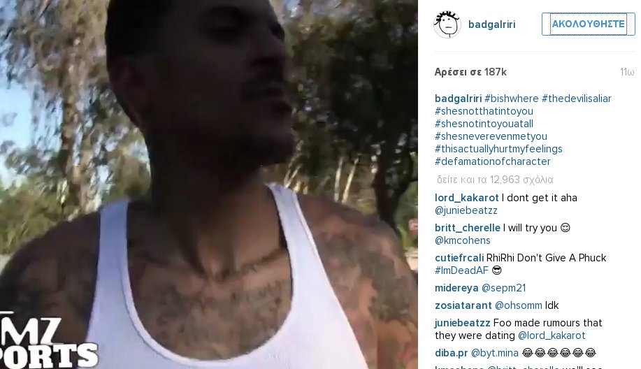 Η Ριάνα χρησιμοποίησε τον προσωπικό της λογαριασμό στο Instagram. Αφού δημοσίευσε μια φωτογραφία του, τη συνόδεψε με μια από σειρά από hashtags, στα οποία ανέφερε «ο διάολος είναι ψεύτης, δεν σε γουστάρει καθόλου, ούτε καν σε έχει γνωρίσει, αυτό με πλήγωσε, δυσφήμιση χαρακτήρα».