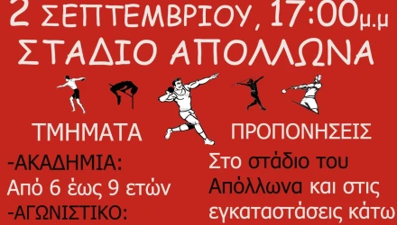 Ξεκινά από αύριο (2/9) το τμήμα στίβου