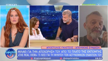 Εκρηκτική ήταν για άλλη μια φορά η εμφάνιση του Απόστολου Γκλέτσου, αυτή τη φορά στο MEGA, με αφορμή τον «χαμό» που επικράτησε προ ημερών μεταξύ αυτού και της Σοφίας Μουτίδου.